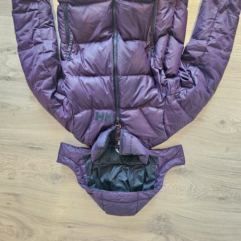 Selger en fin dyp burgunder rød Helly Hansen dunjakke i str 146. Brukt av sønnen min, men passer både gutt og jente.