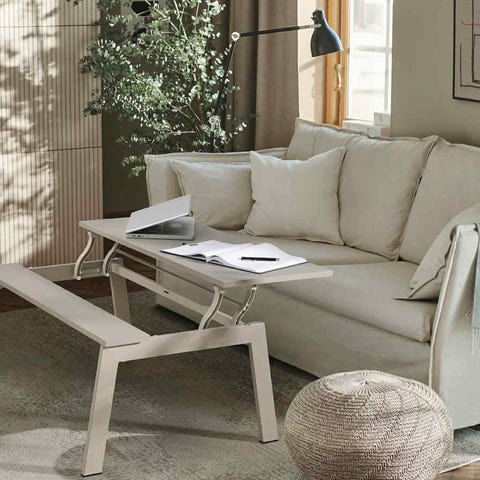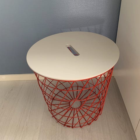 Stuebord med keramikkplate og sorte ben til slags.