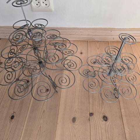 Ny stativ til smultringer. Vinkelen i foten er ikke laget riktig så stativen står ikke rett (tiller). Vinkelen må fikses eller man setter stativet i noe annet.