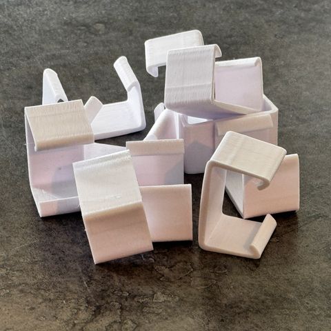 To hylleseksjoner satt over hverandre med klips: en på 105 og en på 70.