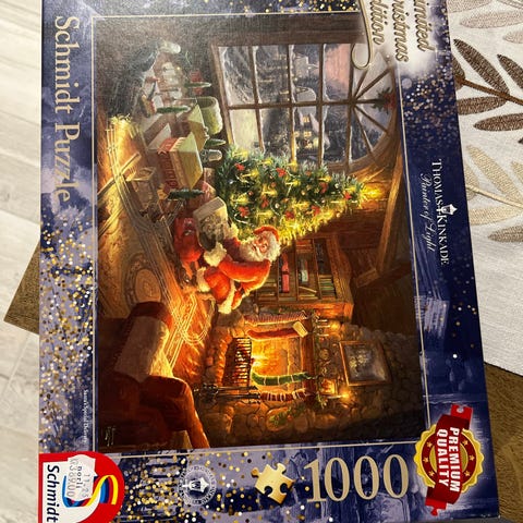 Schmidt Puzzle Julemotiv puslespill med detaljert juletema. Puslespillet viser en koselig juleverkstedscene med julenisse, gaver og julepynt. Egnet for voksne og barn som liker puslespill med julemotiv.