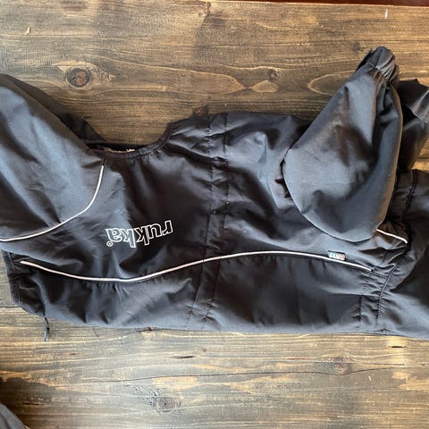 Rukka hundedekken i svart farge med fleecefôr. Designet for å holde hunden varm i kalde forhold. Har justerbare snorer for tilpasning og borrelåslukking for enkel på- og avkledning.