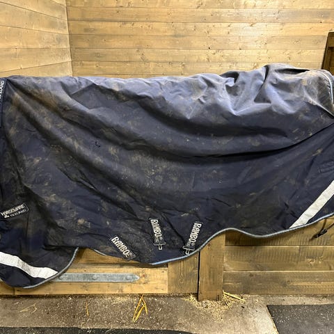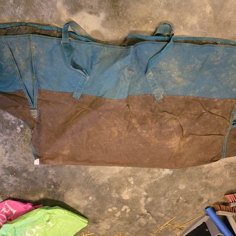 Pent brukt utedekken med avtagbar hals i str. 145cm 500gram selges! Pent og lite brukt, er nylig vasket og impregnert.