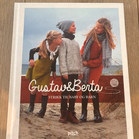 Strikk fra Gustav og Berta strikkebok med oppskrifter for barn i alderen 0-12 år. Inneholder ulike strikkeprosjekter tilpasset barn, med detaljer om materialer og størrelser.