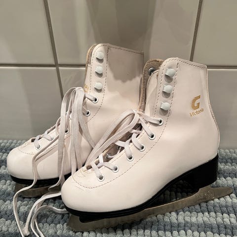 Selger pent brukte danseskøyter fra Victoria, størrelse 32 i hvit farge. Såvidt brukt én sesong av ett barn.