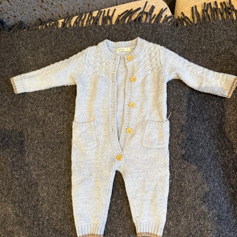 Tovdal ulldress fra Reflex str. 62-68 i en fin grønnfarge (100% merinoull innerst, se lapp på bilde). Pent brukt i 1 mnd da den fort ble for liten til en gutt som vokser fort. Vil si den er riktig i str.