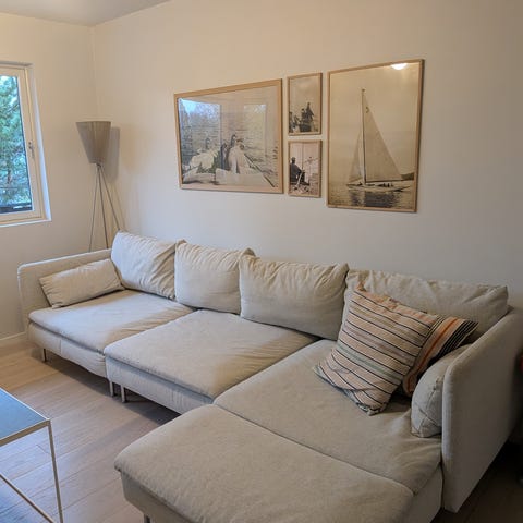 Selger strøkne Söderhamn sofa-moduler, farge Lejde- grå/svart, kjøpt nye på IKEA i 2021. Denne sofaen koster 12000kr ny på IKEA i dag. Selges samlet eller i moduler.