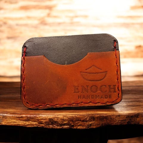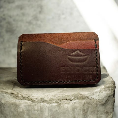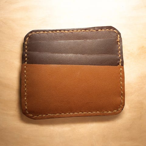 Stilren kortholder i ekte lær, laget for 2 kort.