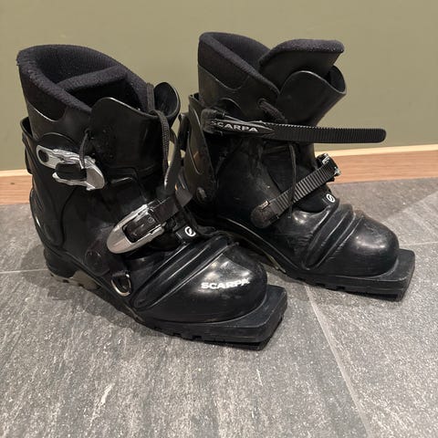 Selger et par Scarpa T4 telemarkssko i str 31,5 mondo. Skoene er pe t brukt og i god stand.