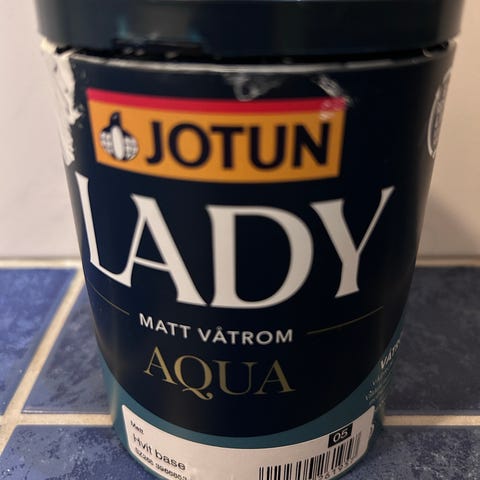 Jotun Lady Aqua matt maling, i farge Tudor, 2,7 liters spann. Brukt minimalt, så vil anslå at det er ca 2,4 liter igjen.