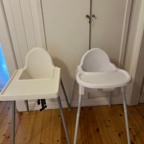 IKEA høy barnestol i hvit farge. Passer for barn og er laget i robust materiale for stabilitet og sikkerhet.