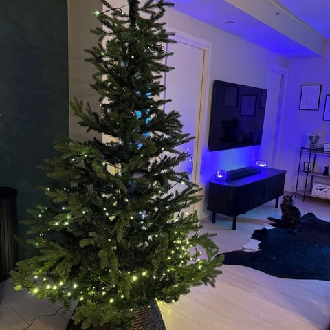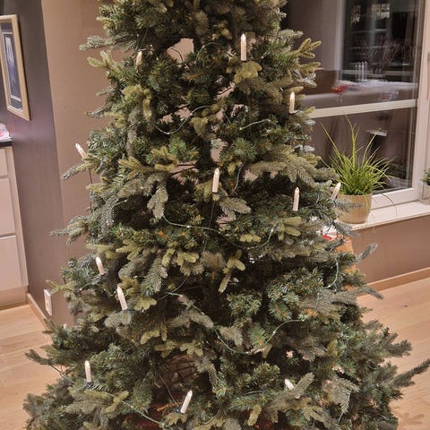 Kunstige juletreet med LED, ukjent merke, noen år gammelt. 180 cm.