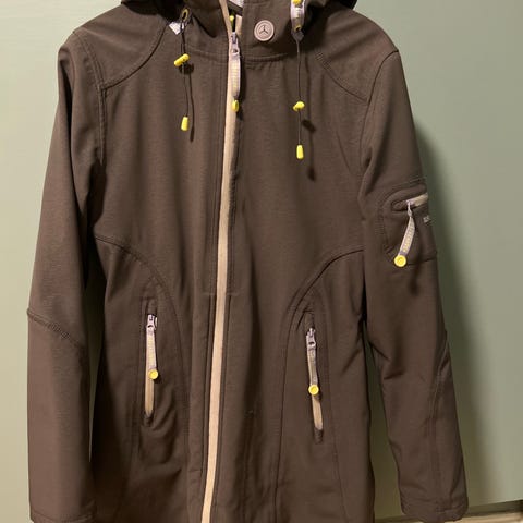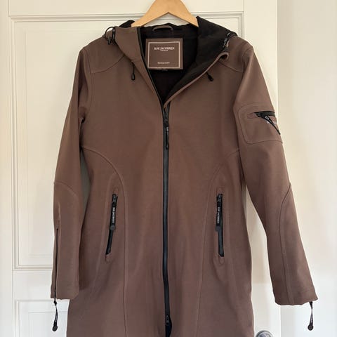 Ilse Jacobsen regnjakke med hette. Foret, kan brukes både sommer og vinter. Maskinvask. Pustende materiale. Komfortabel og feminin form med vannavstøtende belegg. Ny pris 2775.-. Nyrenset.
