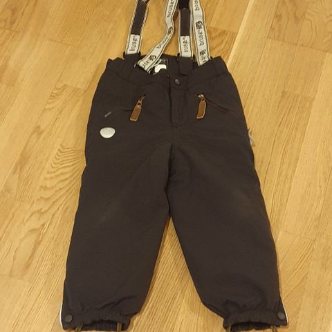 Svært god bukse fra Bruse i størrelse 4 år (str. 104). Bruse Birk er en myk og varm bukse med hele 15 000 mm i vannsøyle, og den er også vindtett. Den er perfekt året rundt, men ikke varm nok som vinterbukse de kaldeste dagene. Buksen har noen flekker som ikke har fått bort i vask, samt et lite hull øverst på det ene låret. Dette er fikset med lapp. (se bilder som viser alle detaljer). Buksen har vært i bruk inntil nylig, og barnet har holdt seg både tørr og varm hele tiden.