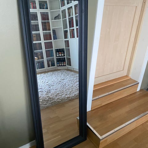 IKEA Speil med sort ramme som ikke selges enda. 94x190cm. Noen bruksmerker, men enda i fin stand.