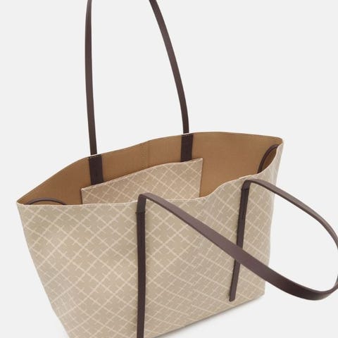 By Malene Birger stoffveske for dame med mønstret design. Vesken har to bærehåndtak og en romslig innside med glidelåslomme. Egnet for daglig bruk og oppbevaring av personlige eiendeler.vesken er brukt og håndtakene er slitt, enkelte flekker på innsiden ellers hel og pen.Kan sendes eller hentes .
