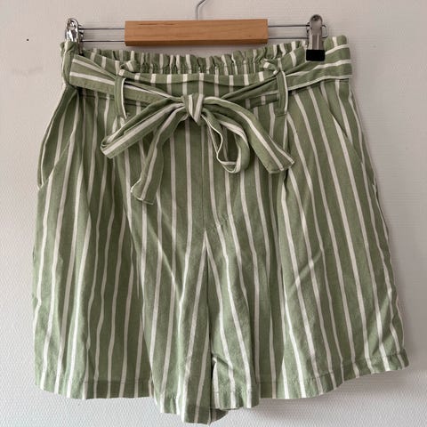 Shortsen er pent brukt, men den har litt nupper. Str. S. Midjemål ustrukket fra side til side er 35 cm, og full lengde fra linning og ned er 32 cm. 80% polyester og 20% bomull.