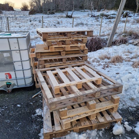 Har en del paller og diverse plank som kan benyttes som ved. Kom og hent.