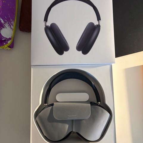 Apple AirPods Max hodetelefoner i grå farge. Brukt 2 ganger. Passet ikke til hodeformen min. Her kan du få en så og si ny AirPods Max til en billig pris.