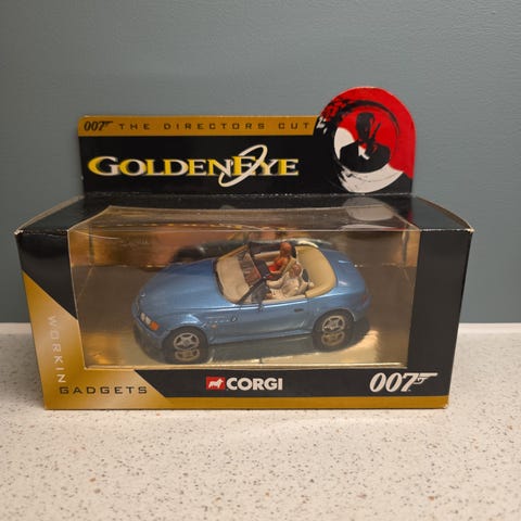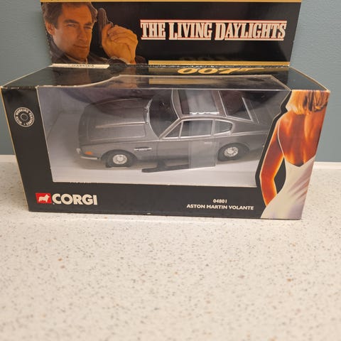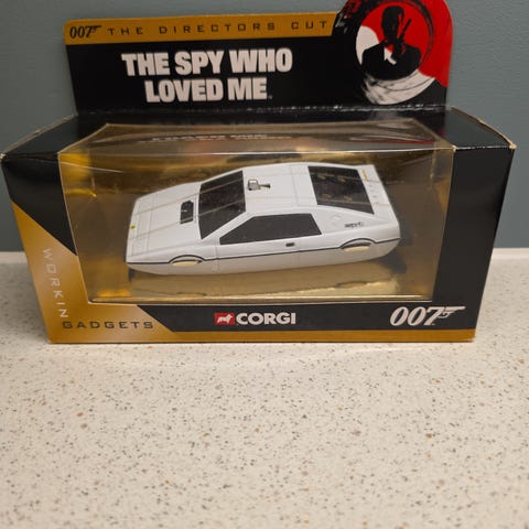 Corgi Goldfinger bilmodell i originalemballasje. Modell av bil fra filmen Goldfinger, detaljert design.