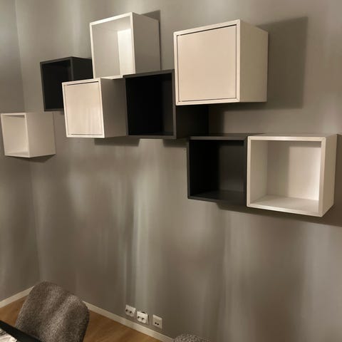 Kjøpte 3 Eket skap fra ikea i desember, men brunfargen passer ikke til det andre brune tre-møblene som jeg har. Det er ekstremt fint!