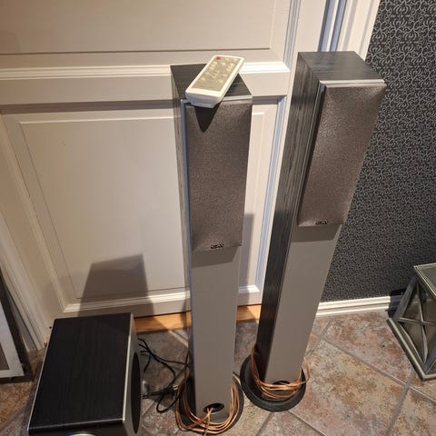 Samsung lydplanke med 2 høytalere og subwoofer. Virker ikke. Vil ikke slå seg på.