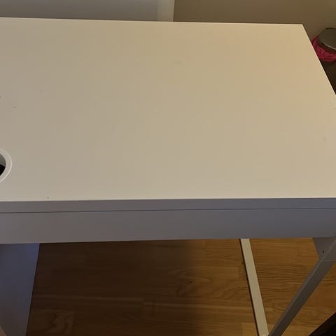 Et svart skrivebord i god stand. Har 2 små merker som har mistet fargen, ellers ingen bruksmerker.