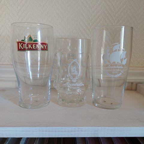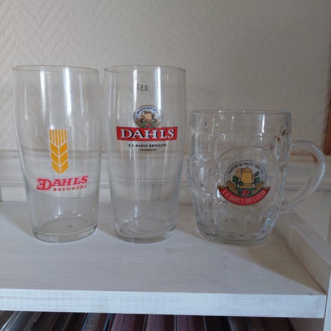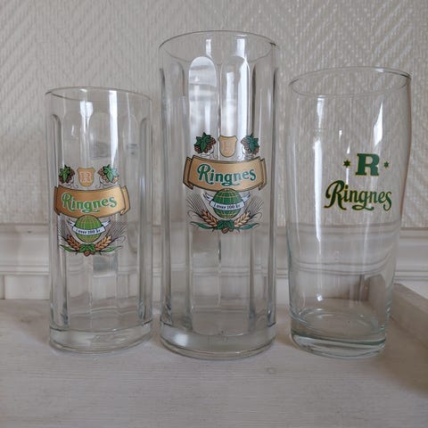 7 Fjell, glass 0.35 L. Mikrobryggeriet, glass 0.5 L. Inderøy Gårdsbryggeri glass 0.5 L. Nøgne ø, glass 0.2 L. Lundetangens glass, 0.5 L. Fredrikstad bryggeri glass 0.5 L. Akershus bryggeri glass 0.5 L. Nordlands bryggeri stettglass 0.4 L. Tou stettglass 0.4L. Hansa glass 0.5 L. Borg bryggeri seidel 0.5 L. Ved kjøp av 1 glass kr. 100. Ved kjøp av 2 glass eller flere kr. 75 pr. glass. Kjøper betaler porto