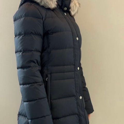 Tommy Hilfiger tynn dunjakke med avtagbar hette i størrelse M. Oppleves noe liten i størrelsen.