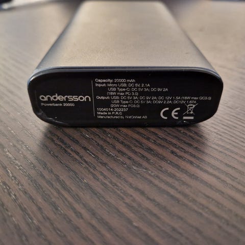 Selger en Andersson Powerbank 20.000 PD/QC 3.0 V2.