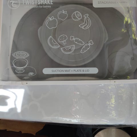 Twistshake fat, skål og underlag.