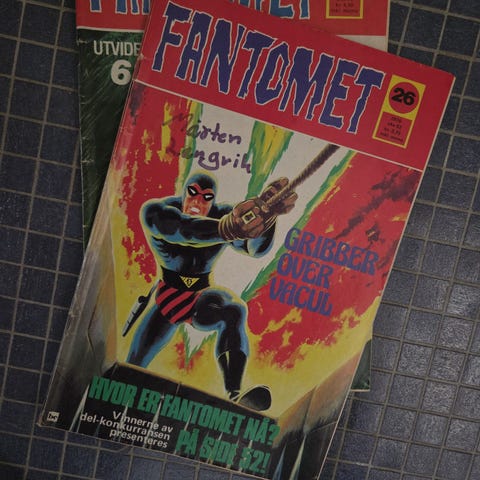 Jeg skal selge et Fantomet blad fra 1974. Bladet har noen synlige bruksmerker i form av at det er klippet ut en annonse inne i bladet, samt at det er skrevet et navn inni det. Kan sendes mot at kjøper betaler porto.