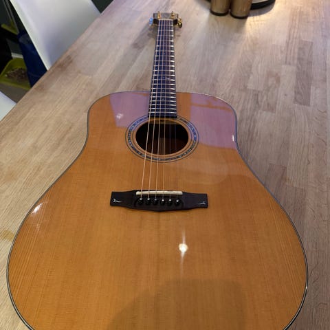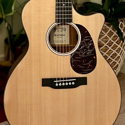 Martin 000 Junior er en akustisk gitar med en mindre kroppsstørrelse, egnet for ulike spillere. Den har en naturlig trefinish med lys frontplate og mørkere sider og bakside.
