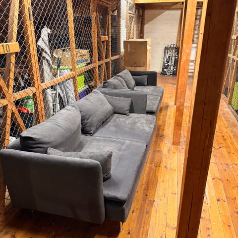 Sofagruppen fremstår som ny siden den knapt er brukt. Kjøpt i november og selges fordi vi flytter til nytt kontor.
