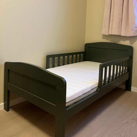 Lite brukt av et barn, kjøpt ny i 2023. Madrassen er også ny og alltid brukt madrassbeskytter. Lite brukt i ca et år.