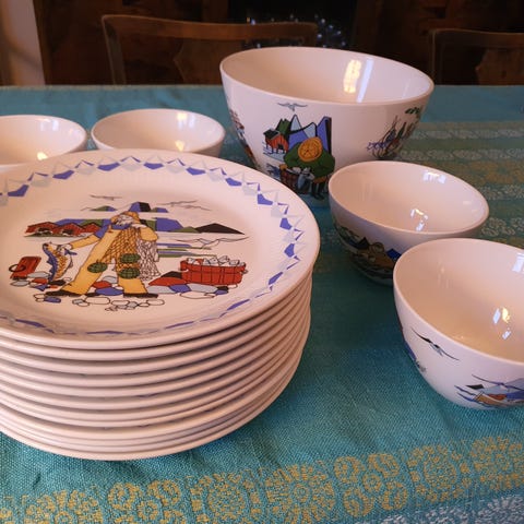 Flott vintage fiskeservise fra Figgjo