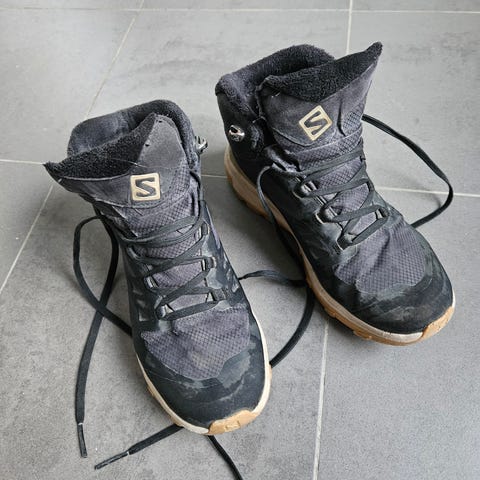 The North Face Tsumoru vinterstøvler for dame i størrelse 37. Støvlene er svarte med snøring og har fôr med pelsdetaljer. Egnet for kalde værforhold.