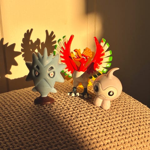 Pokémon samlerfigurer sett bestående av fem små figurer i ulike farger og former. Figurenes størrelse er liten, egnet for samling eller lek. Materialet er plast. Settet inkluderer kjente karakterer fra Pokémon-universet.