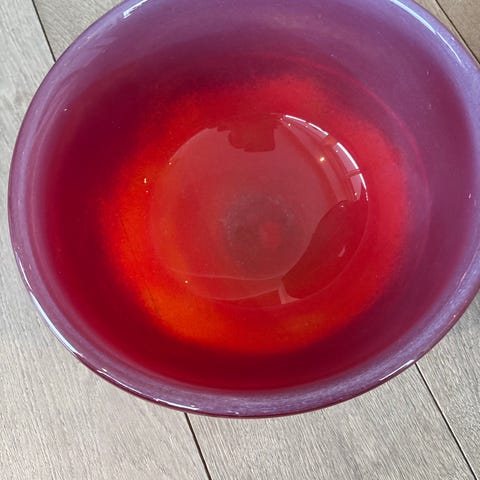 Iittala dekorasjonsbolle i glass med røde detaljer
