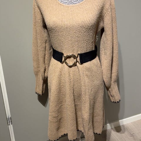 Strikket / ullkjole fra HM, svært lite brukt, str m, beige mellert. Fint basic plagg, lett å style både opp og ned og funker til det meste. Litt nupper, men det er bare å gå over med nuppefjerner 😊