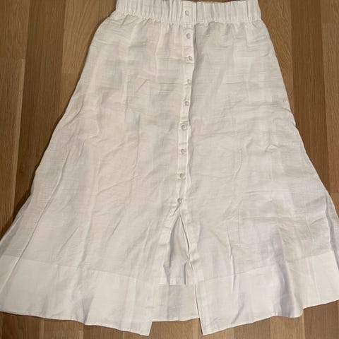 Ella&il Blå Lin skjørt i størrelse XS. Skjørtet er laget av lin og har en blå farge. Kjøpt for smått, og har ikke blitt brukt. Men lappen er tatt av. Julli wavy linen skirt.
