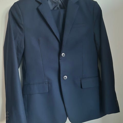 Pent brukt dress svart farge. Jakke str 146 og bukse 152. Følger også med med en hvit skjorte. Så man kan få en komplett dress for 150 kr. Kan sende.