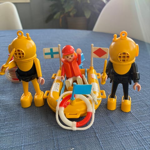 Vintage Playmobil «Mannskap og utstyr til sett 3540 husbåt» selges.