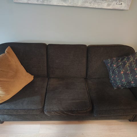 Gir bort en sofa som jeg selv kjøpte brukt, godt brukt men mye bruk igjen 🙂