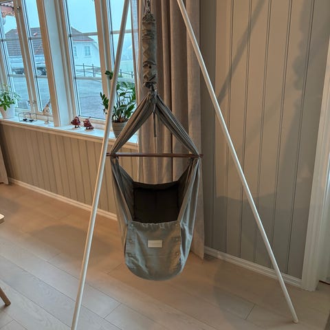 - Basic hengevugge med vuggemotor Connect Basic i farge Nature og med Stativ ‘Cream White’ (Nypris: 7.650 kr)