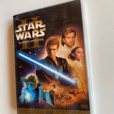 Star Wars Klonene angriper DVD med to plater. Inneholder filmen Klonene angriper fra Star Wars-serien. DVD-en er i standard format og leveres i originalt etui. Norsk tekst.