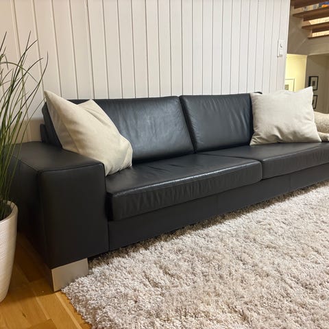 3 seter 231 cm lang 86 cm dybde høyde73 cm. Den har noen sår på venstre ryggpute.