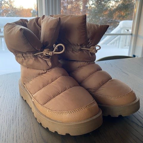 DKAKI Sympatex Vinterstøvler i størrelse 38. Støvlene har en lys brun farge med pelskant rundt åpningen og snøring foran. Sålen har godt mønster for grep. Egnet for bruk i vintervær.
