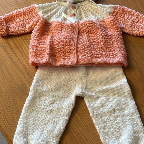 Strikket i kløfri merinoull. Lue leveres med dusk av «pels» eller garn etter ønske. Røykfritt hjem. Eventuell porto kommer i tillegg.