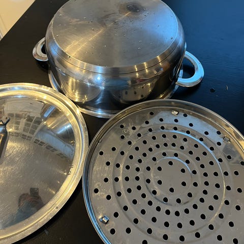 Størrelse: 18*35*23cm dampkoker Dampkokeren er laget av matsikkert rustfritt stål og kan brukes på induksjon.
